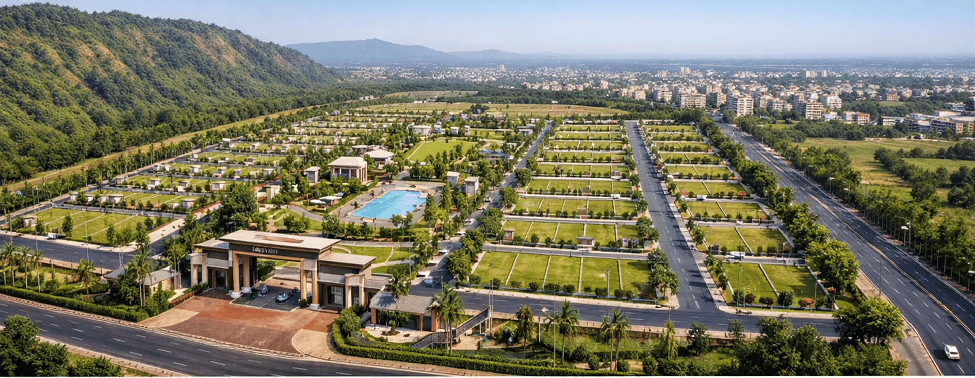 A Premium Residential Plotted Township Nestled Beside Serene Hills, Offering A Perfect Blend of Nature, Wide Roads, Lush Greenery, And Modern Living for A Peaceful Yet Connected Lifestyle.